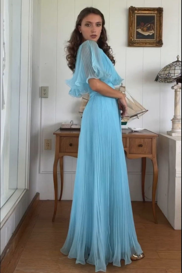 Soft Halter Half Sleeve A-line Chiffon Long Prom Dresses For Party, PG884
